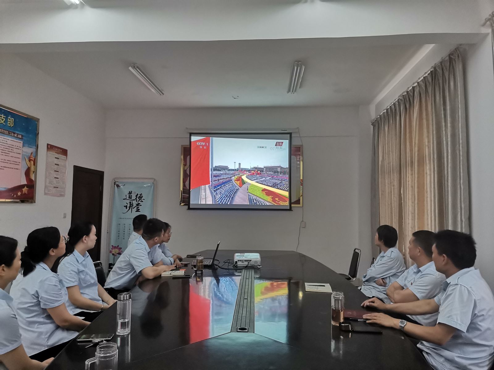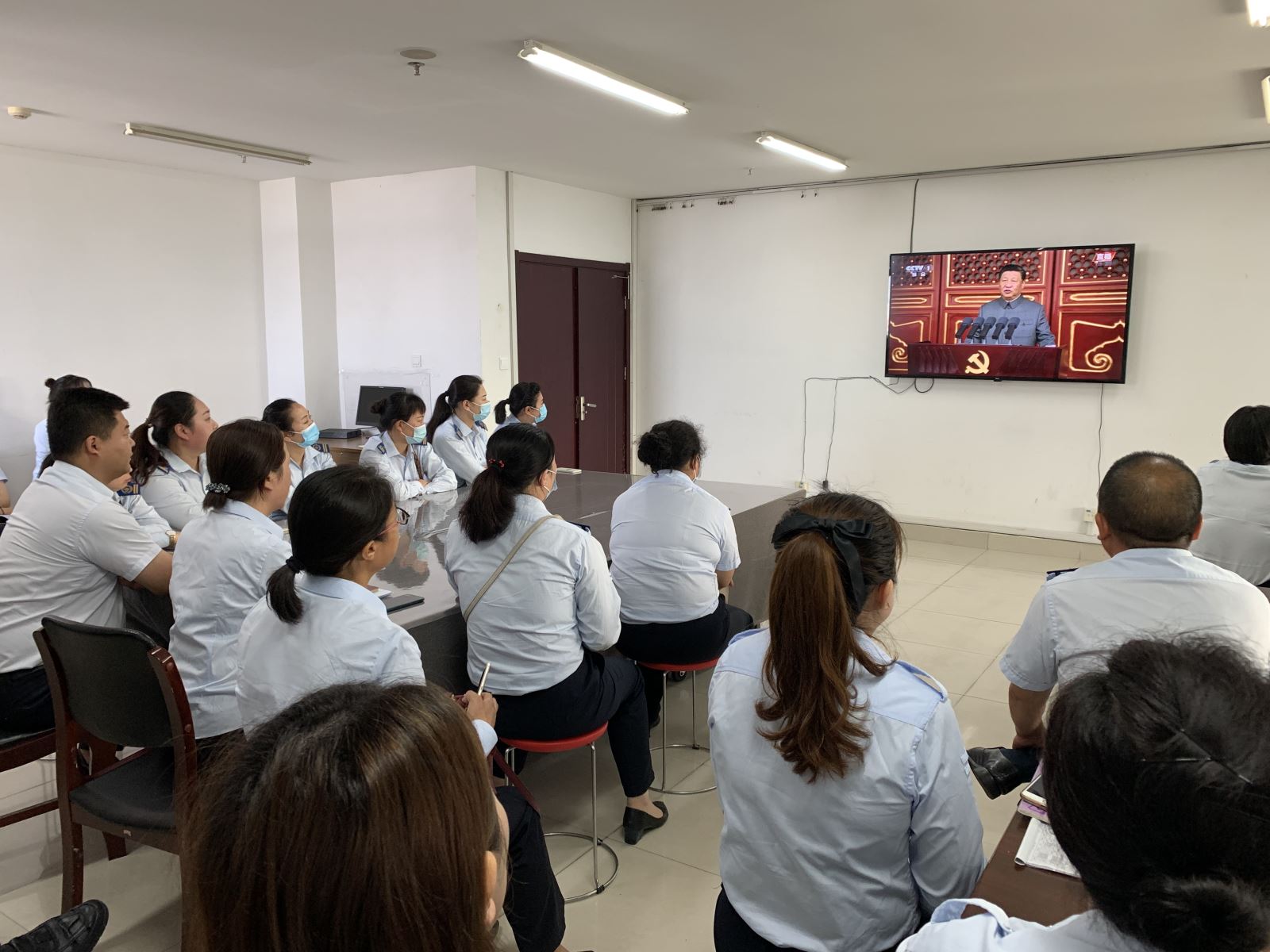 為慶祝中國共產黨成立,公交集團機關支部組織機關全體黨員、積極分子在二樓會議室集中收看慶祝中國共產黨成立100周年大會全程直播實況。